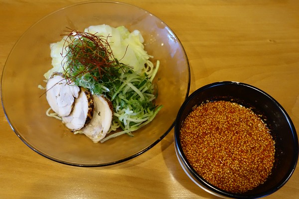 「特製つけ麺1玉」。トックのスープをベースにしたというつけ汁。鶏白湯らしいが、辛味と相まって独特な味わい。広島つけ麺のほとんどがタレの上に辛味油が浮いて分離しているが、こちらは溶け合っており、結構辛い。