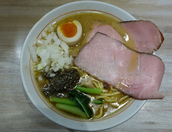 無臭豚骨ベースに煮干しをブーストしているものの、セメントというレベルではない。トッピングされている煮干しペーストを溶かしても。