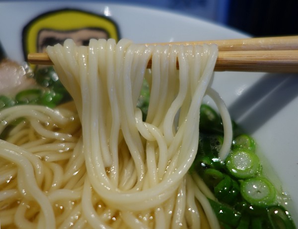 麺は「天神今泉店」とは異なる地元「原田製麺」#20くらいの中太ストレート麺で、もっちり滑らかで旨く、いままで「原田製麺」で経験のない食感。