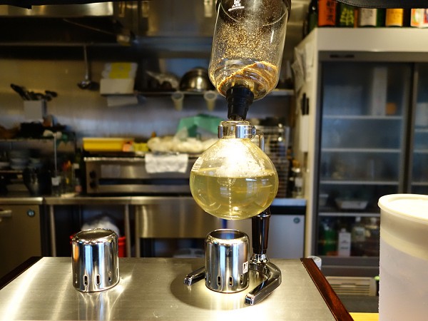福岡市天神発祥のサイフォンで出汁を抽出するラーメン店。広島駅前で開業し、現在はこちらへ移転・間借り営業している朝ラー可能店。