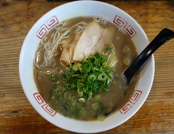 特濃コッテリスープの「ラーメン」を。あっさり豚骨の「塩豚骨ラーメン」を注文するのは無理(笑)。