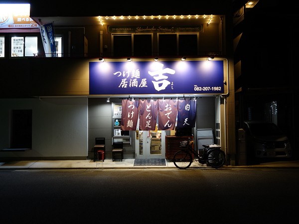 すっかり周囲の建物がなくなってしまった向洋駅前ロータリーに煌々と灯るつけ麺居酒屋。