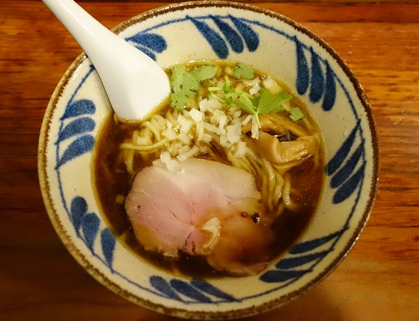 すぐに満席になったので、適当なところで「中華そば」を。以前とはかなり構成の異なる味に変わっている。どうやら鶏と帆立とパクチーの根による出汁らしいが、独特な癖がそのためのよう。