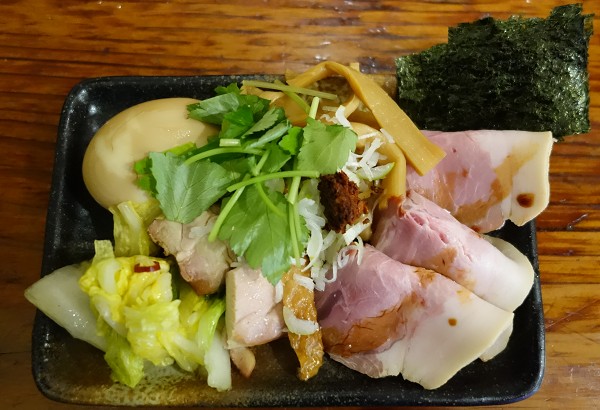 当初は別のお店の予定だったところ、2月いっぱいでラーメン店終了・移転とのことで、最後のお別れに。オープンのタイミングで入店。「おつまみ盛り合わせ」をあてにハートランドで一杯やりながら、他のお客さんが来るまではあれこれご主人とお話しをすることに。